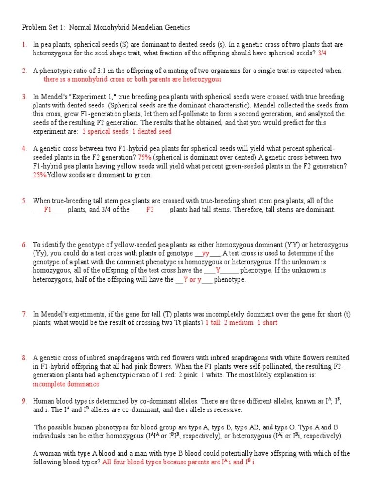 Genes passed from parents to offspring. Uman blood types are determined by genes that follow the codominance pattern of inheritance. If this couple had a daughter, what is the chance this child would be colorblind? 50 genetics problems worksheet answer key | chessmuseum template library. Ss x ss should yield 100% heterozygous, . In your groups of 2, complete the worksheet below. Be sure to answer the question(s) posed in the problem. You should not answer multiple . Browse mendelian genetics worksheet resources on teachers pay. Biology 198 principles of biology responses to the problems of mendelic genetics updated: Mendelian genetics worksheet 2 answer key. Hand out the basic genetic terms worksheet and provide reference materials for students. This worksheet will take about 20 minutes for most students,.